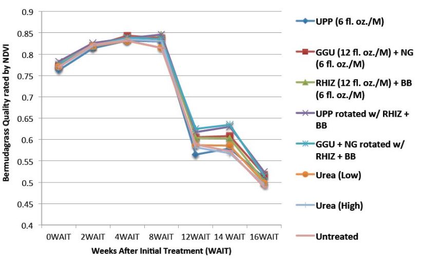 다양한 영양소 제형과 액상 토양 개량제가 스포츠 잔디 품질, 성능, 활력 및 경기력에 미치는 영향